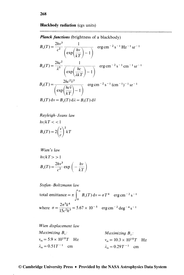 Black Body equations