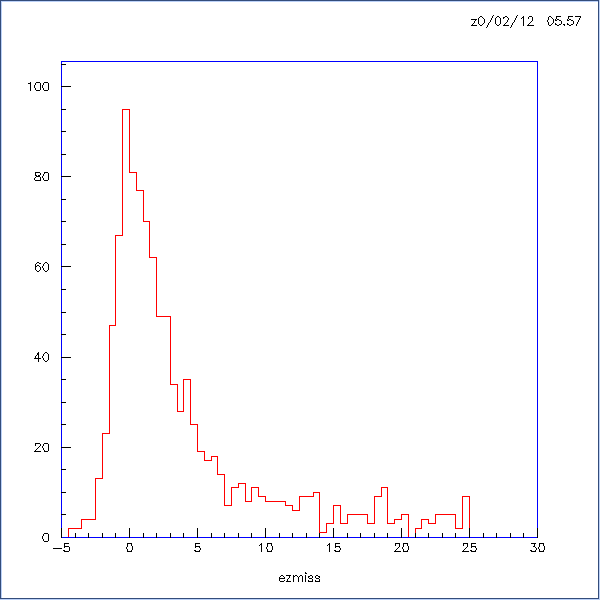 e_miss spectra for run number 2116