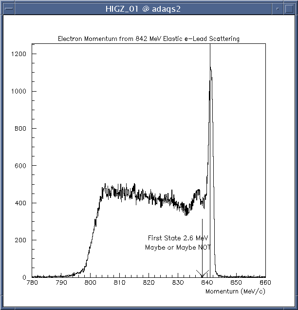 Below is plot of lead elastic peak on 0.1 MeV per bin scale.