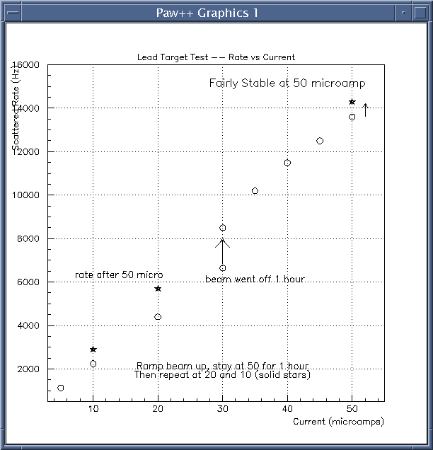 Below is plotted the rate versus current for lead test.
